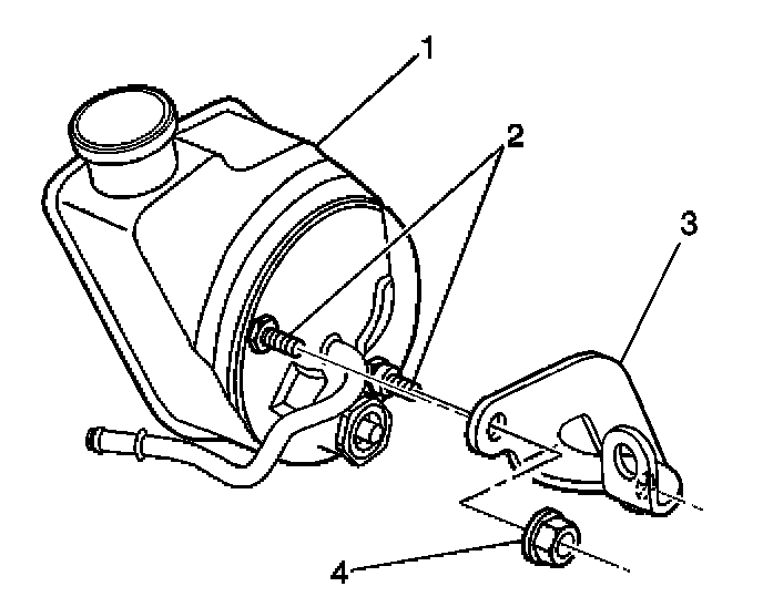 1. Install the bracket (3) to the rear of the pump (1).