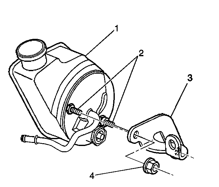 13. Remove the bracket (3) from the rear of the pump (1).