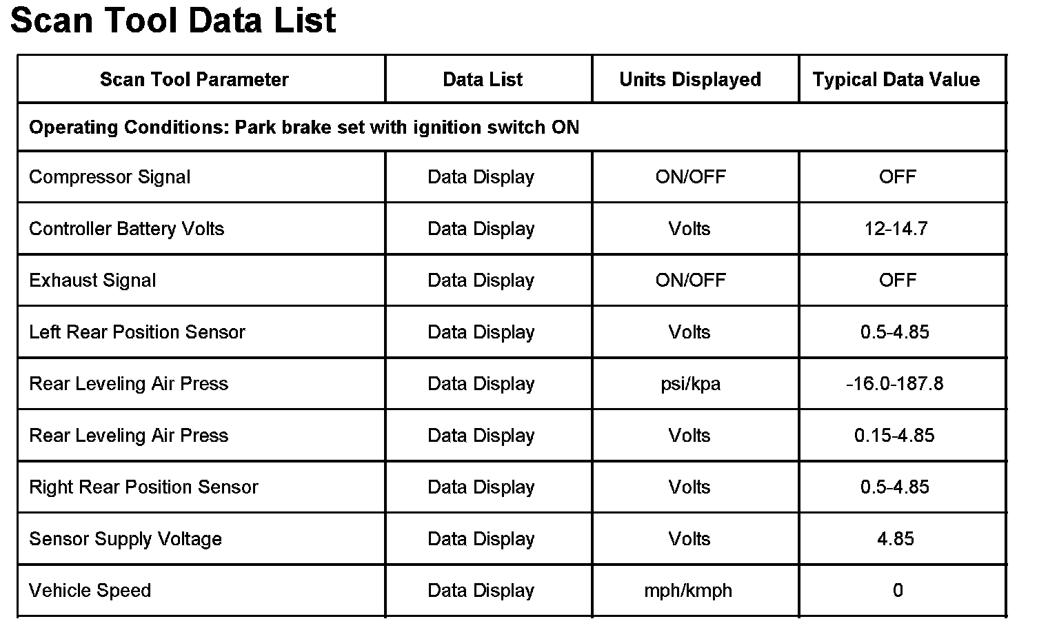 Scan Tool Testing - Automatic Level Control (ALC)