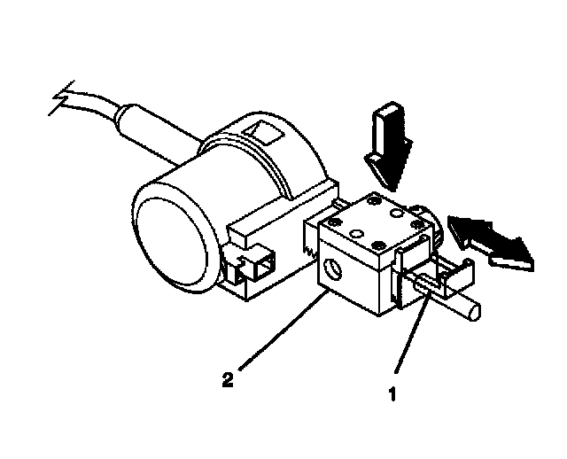 3.1. Pull out the tab (1) on the adjuster block side (2) of the shift lock control actuator.