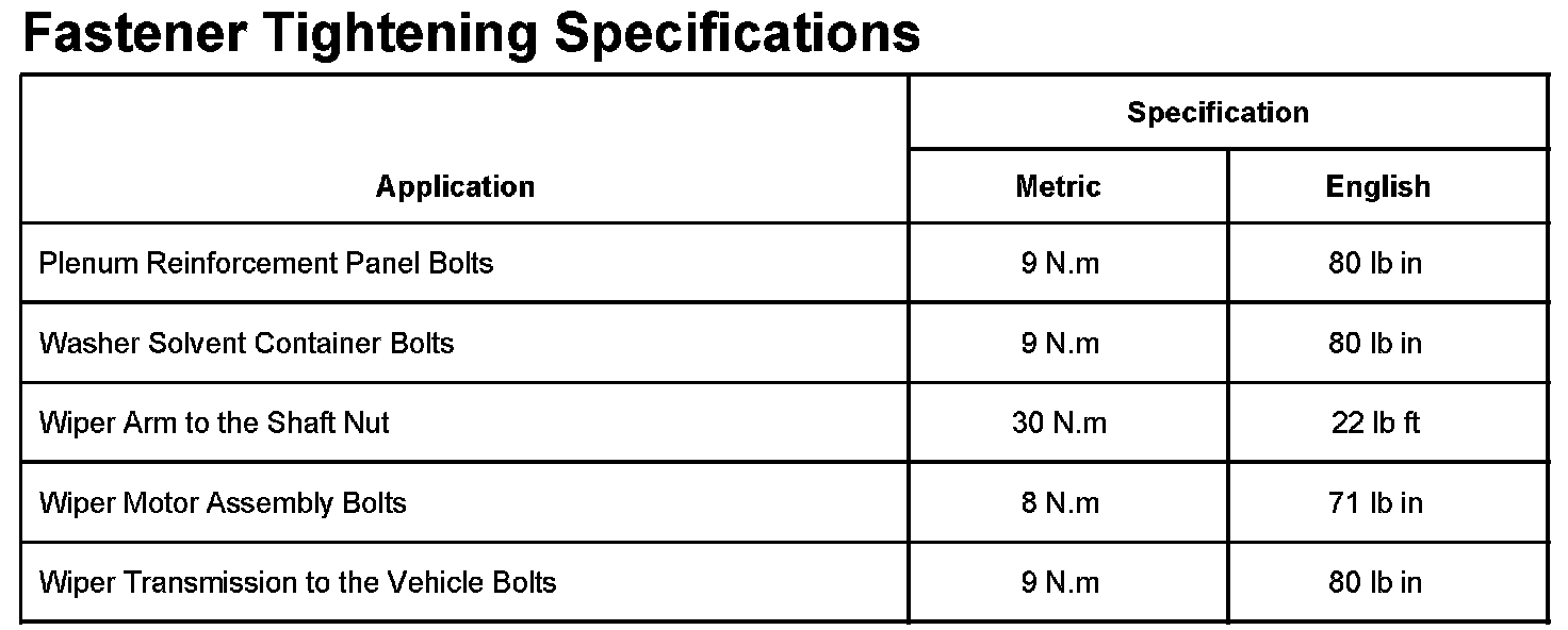Wiper and Washer Systems: Specifications