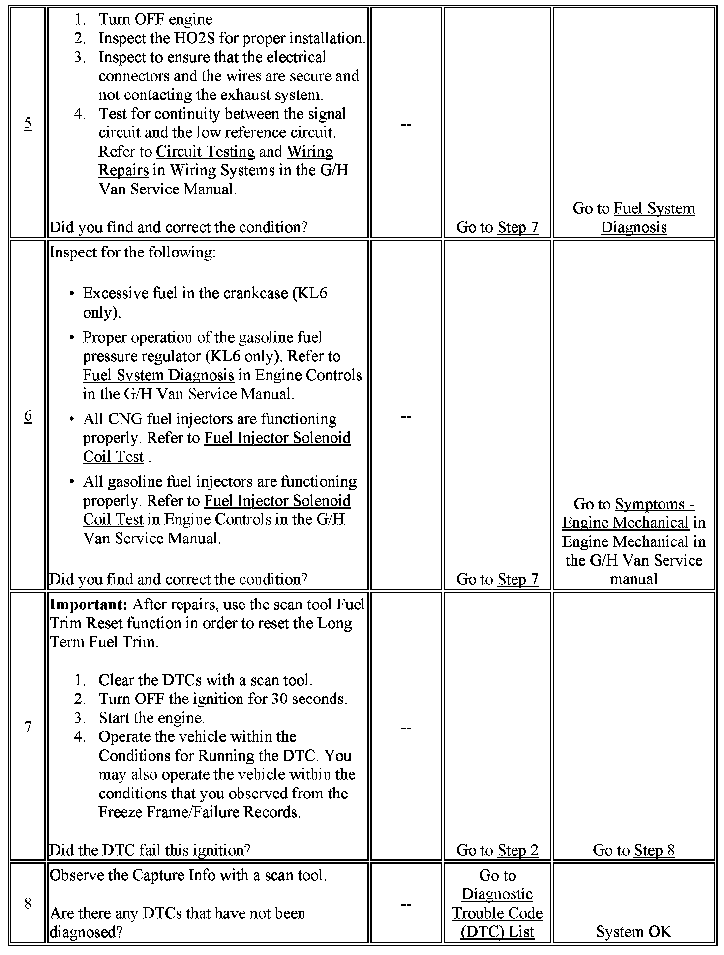 6. On KL6 equipped vehicles, an EVAP canister that is saturated will cause a rich condition. If the condition is not found, a worn cam, worn intake or exhaust valves, or other engine mechanical failure may be the cause of the DTC.
