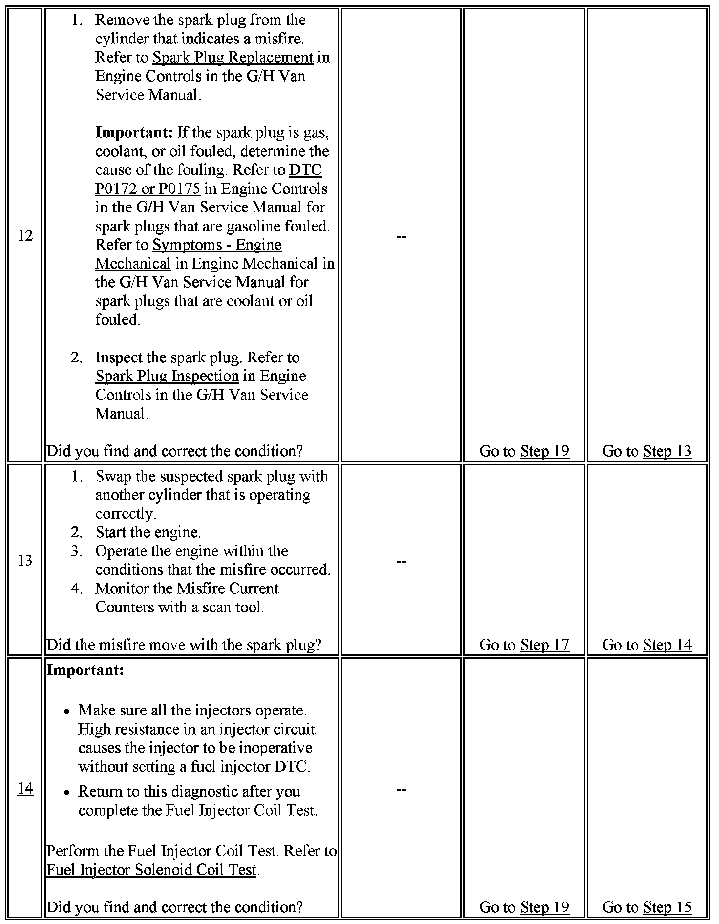 The numbers below refer to the step numbers on the diagnostic table.