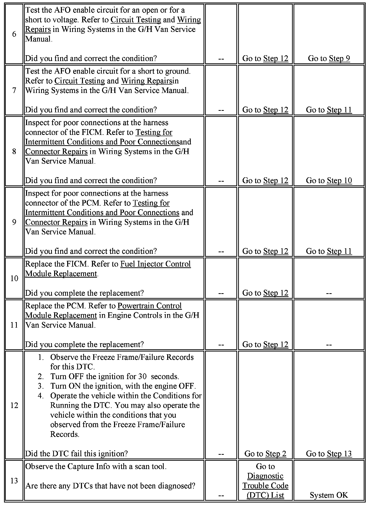 4. This step tests if a ground is constantly being applied to the AFO enable circuit. With the FICM disconnected, the PCM will command gasoline operation. The AFO enable circuit should not illuminate the test lamp.