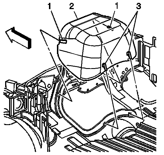 1. Remove the front passenger seat. Refer to "Seat Replacement - Bucket".
