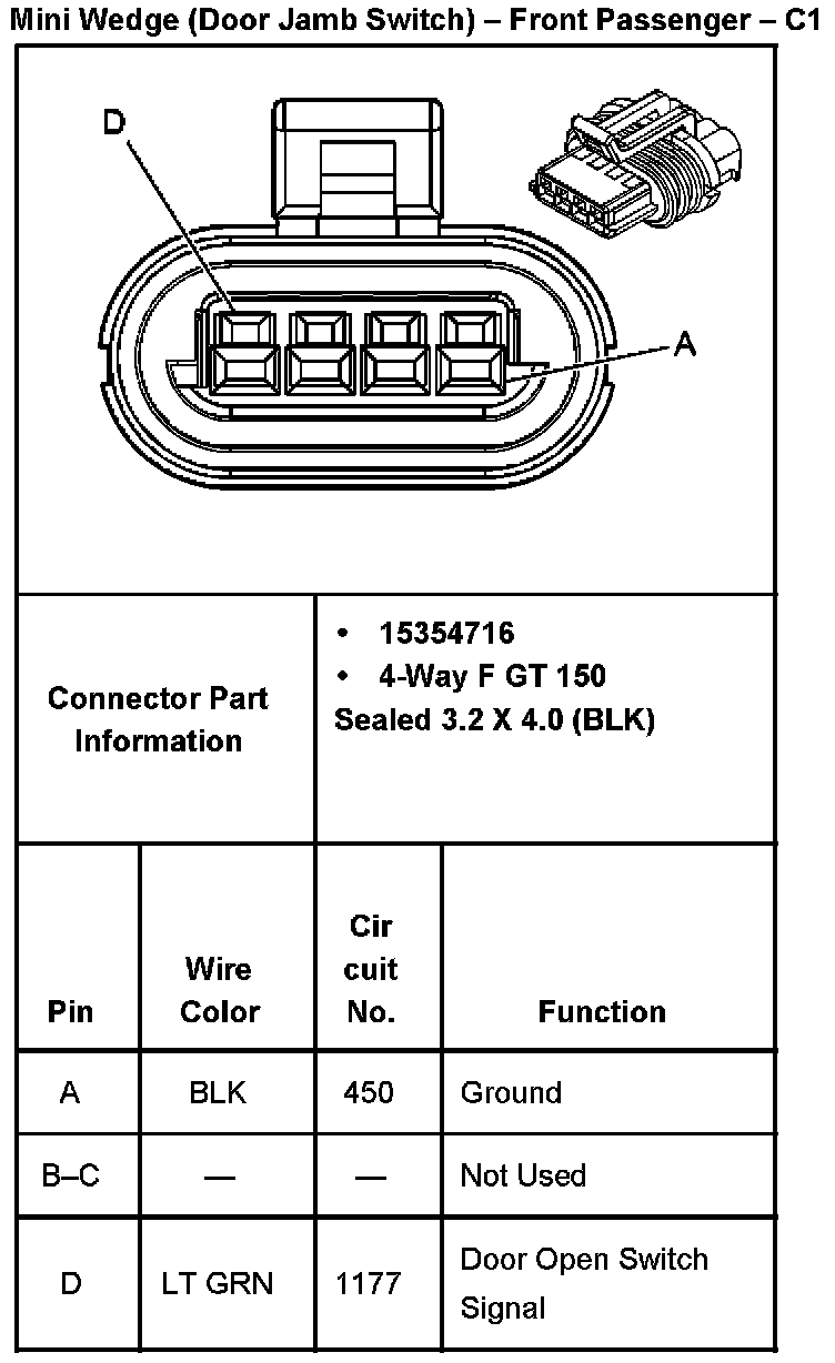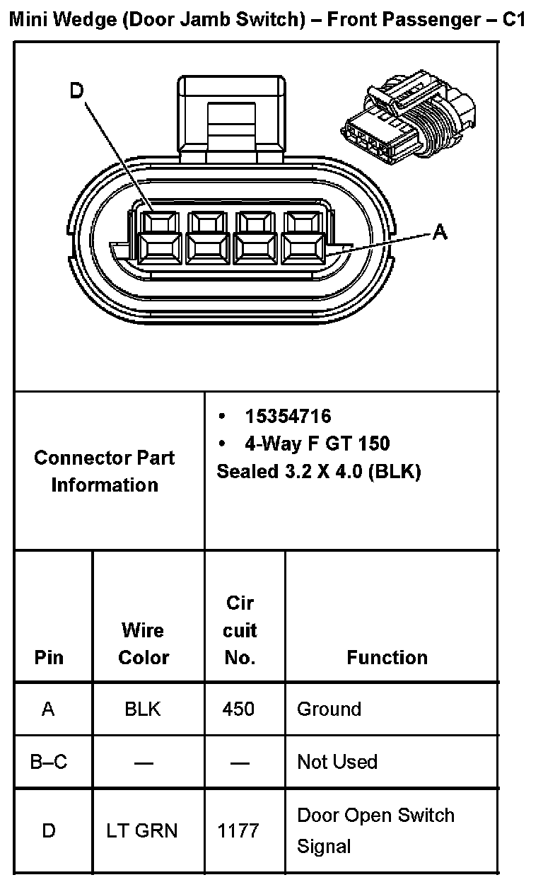 Mini Wedge (Door Jamb Switch) - Driver - C2 With RPO Code AU3:
