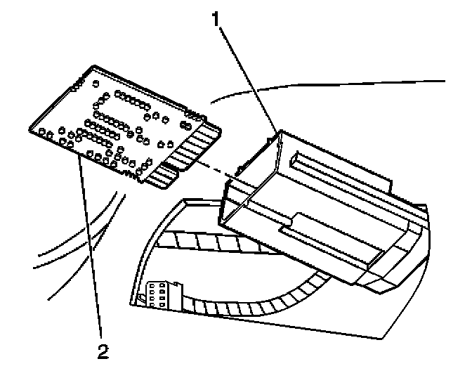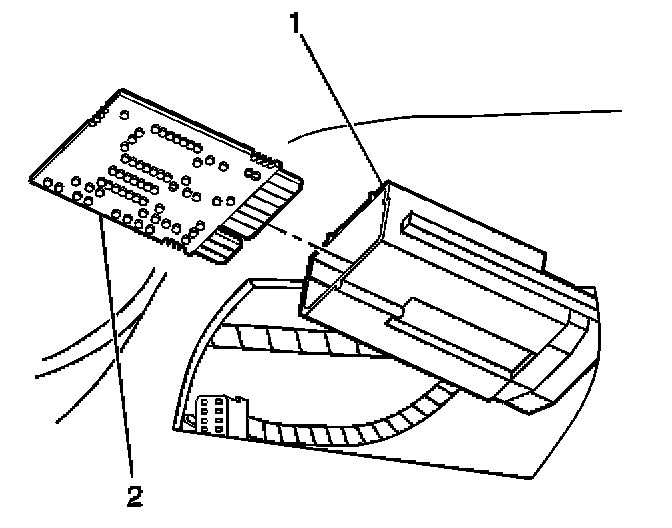 4. Remove the HVAC control processor (2) from the HVAC processor case (1).