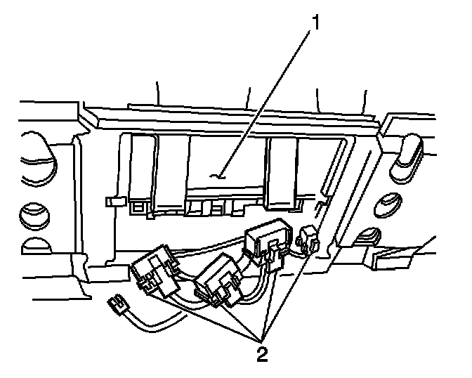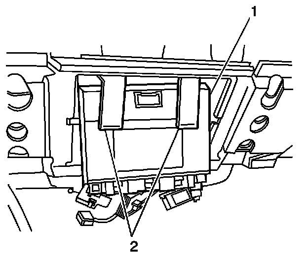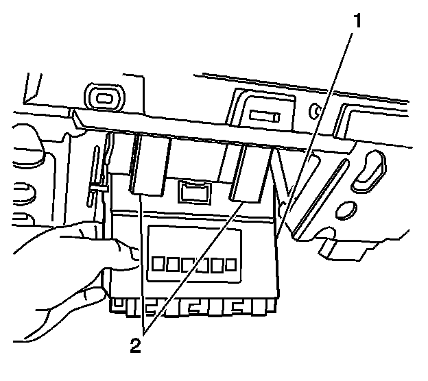3. Release the tabs (2) retaining the BCM (1) to the bracket.