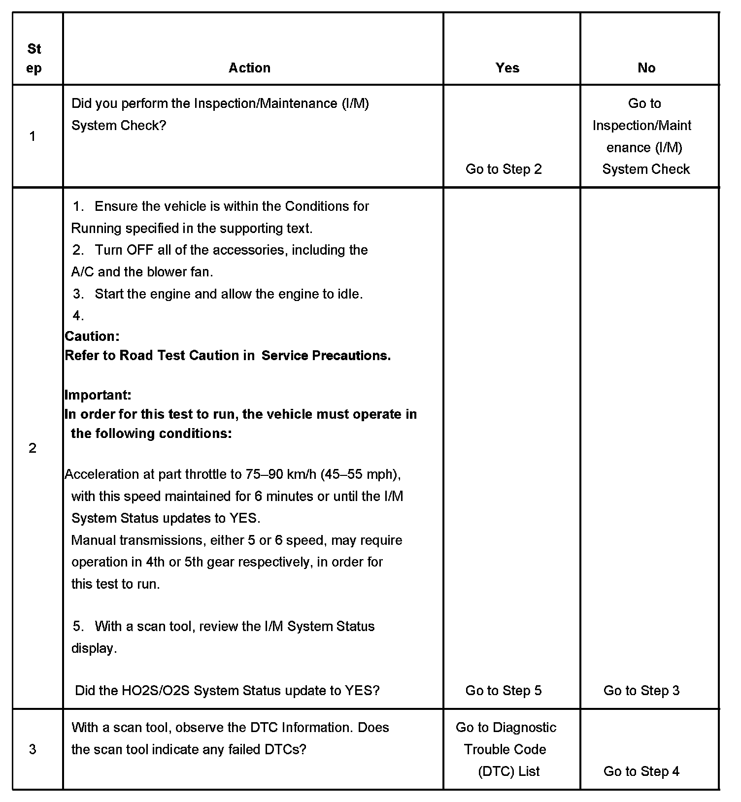 The purpose of this test is to satisfy the enable criteria necessary in order to execute I/M readiness diagnostics for the oxygen sensor (O2S, HO2S) system. The test may be used in order to set the I/M System Status to YES. Ensure that the vehicle meets the requirements listed in Conditions for Running before performing this test. Failure to meet the necessary requirements may produce inaccurate test results.