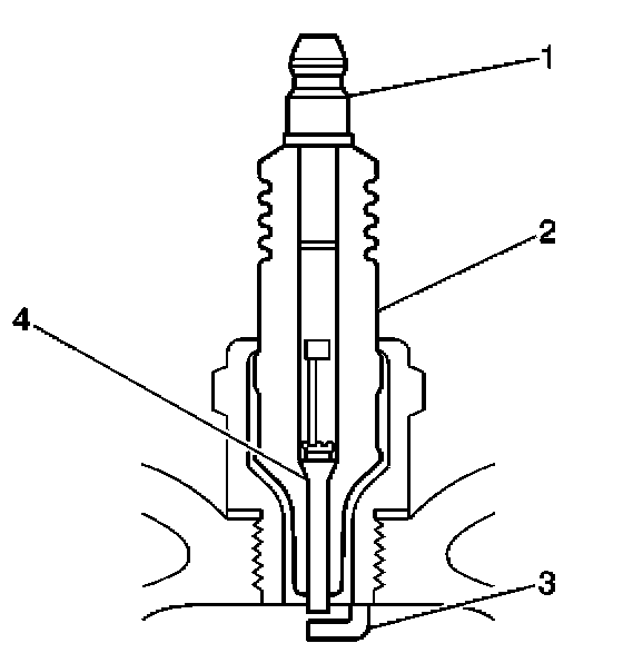 - Inspect for the correct spark plug torque. Refer to Ignition System Specifications. Insufficient torque can prevent correct spark plug operation. An over torqued spark plug, causes the insulator (2) to crack.
