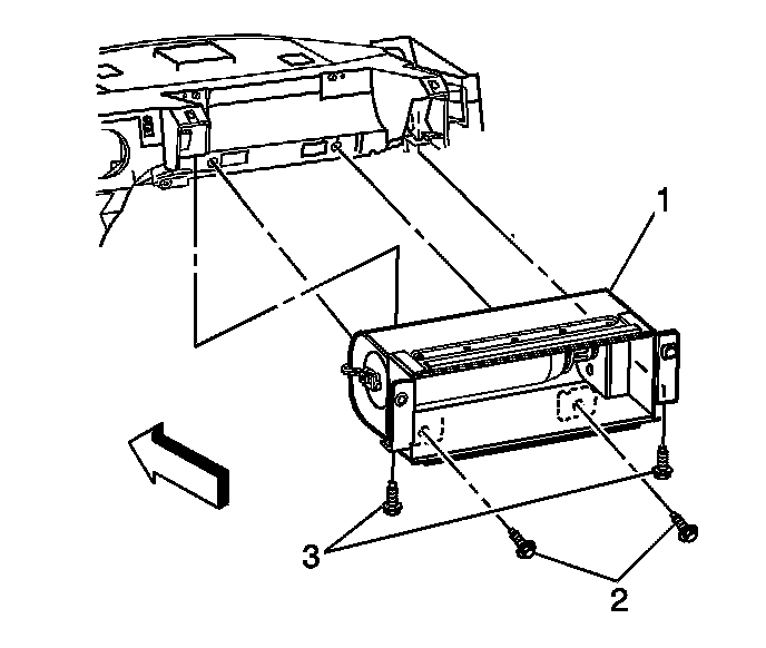 3. Install the lower bolts (3) to the inflatable restraint I/P module.