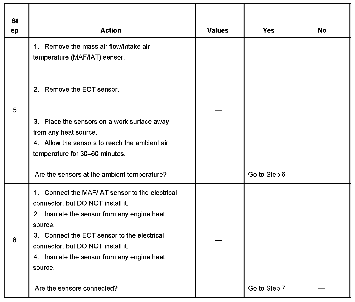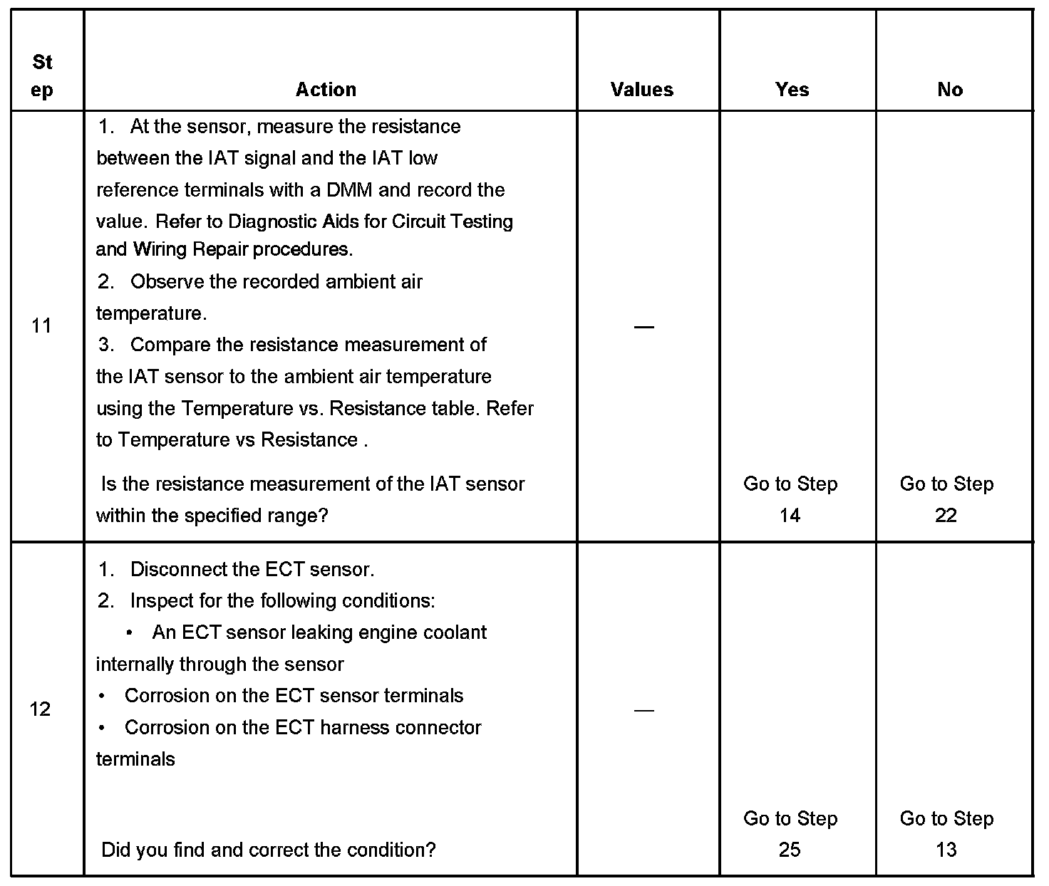 - DTCs P0112, P0113, P0117, P0118, P0125, P0128, P0601, P0602, P1683 are not set.