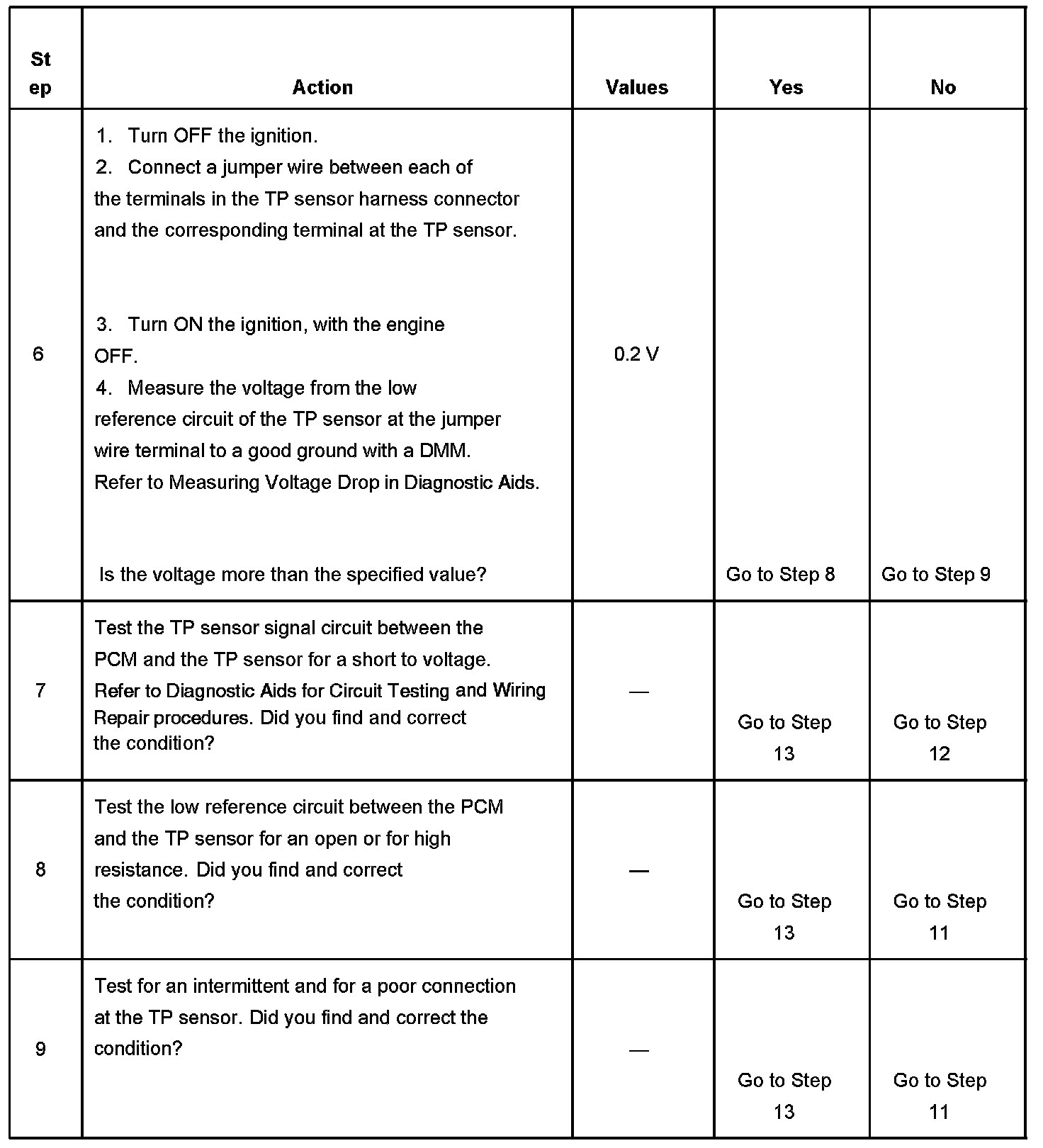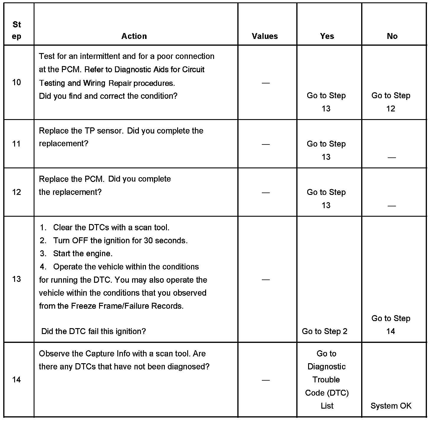 The number below refers to the step number on the diagnostic table.
