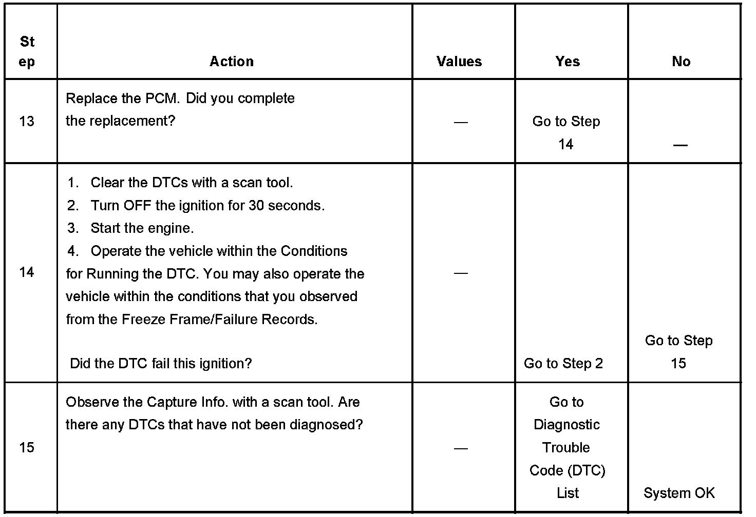 - A current DTC, Last Test Failed, clears when the diagnostic runs and passes.