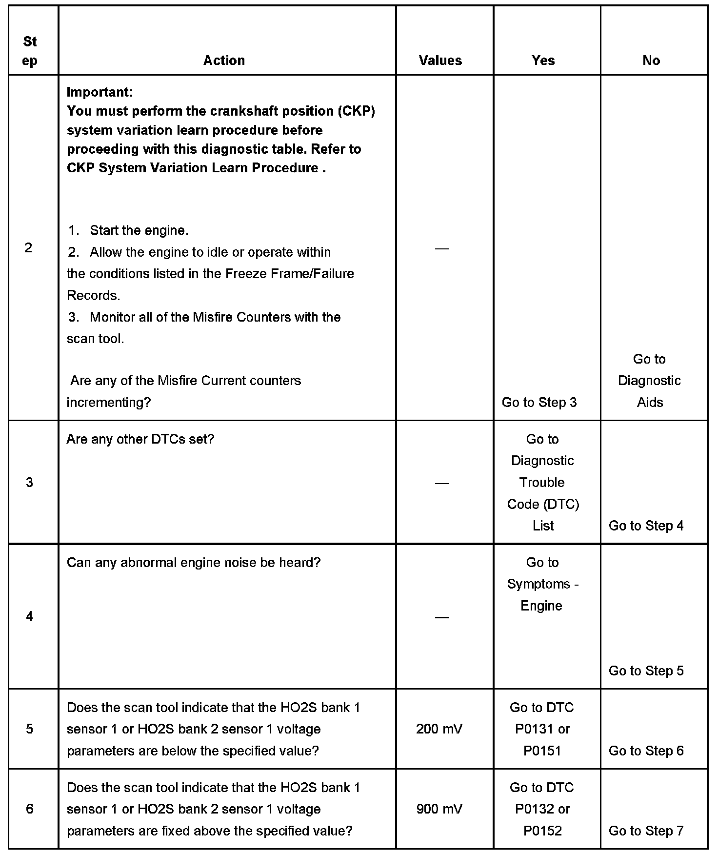 2. If the actual CKP variation values are not within the learned values, the misfire counters may increment.