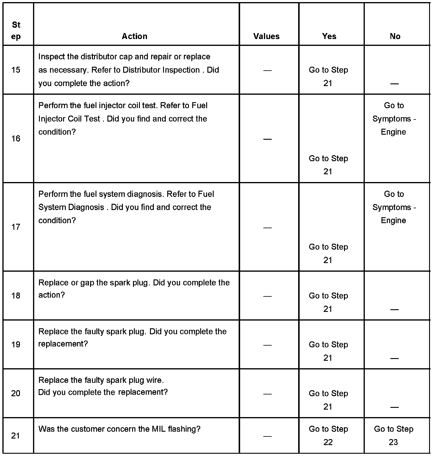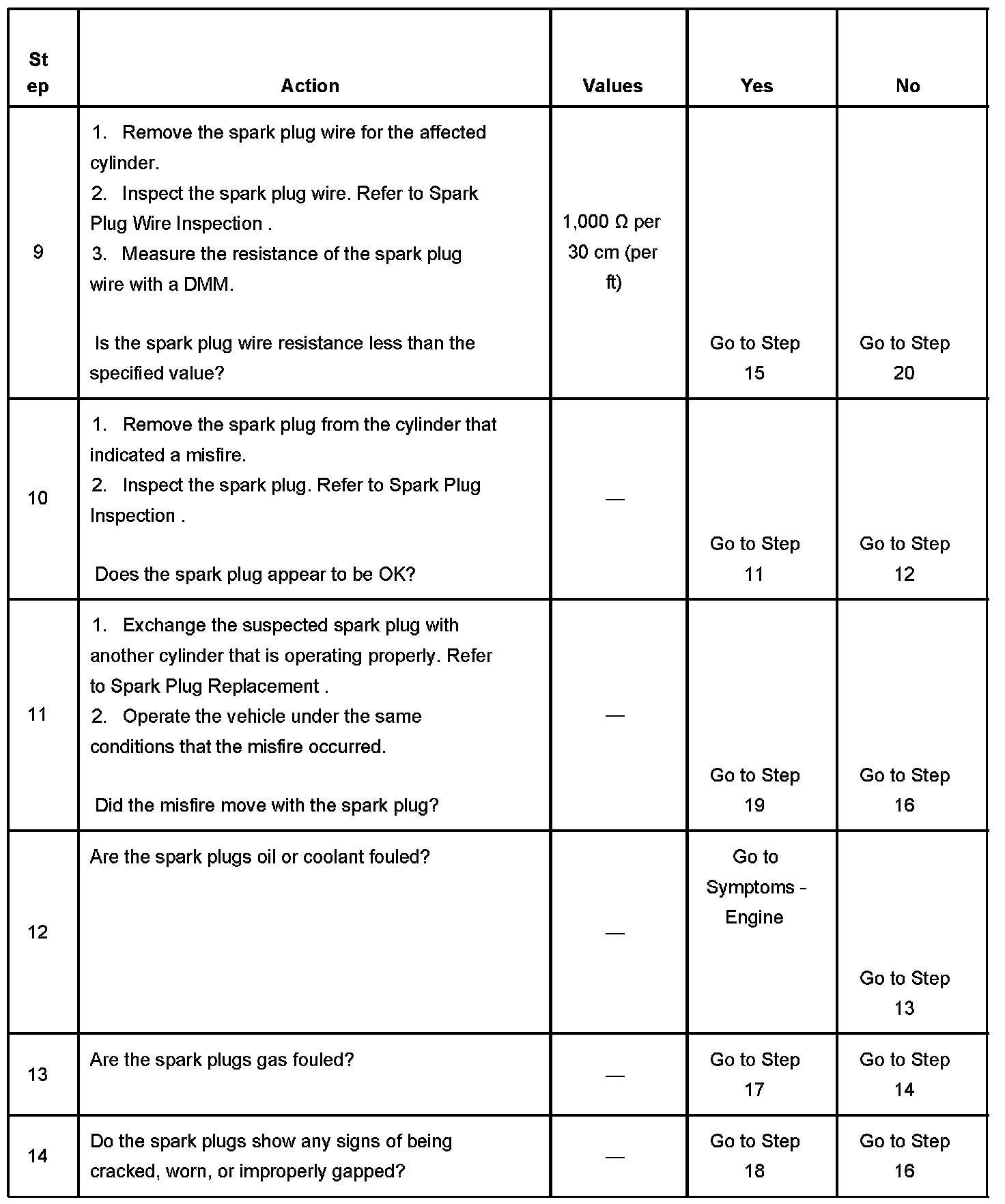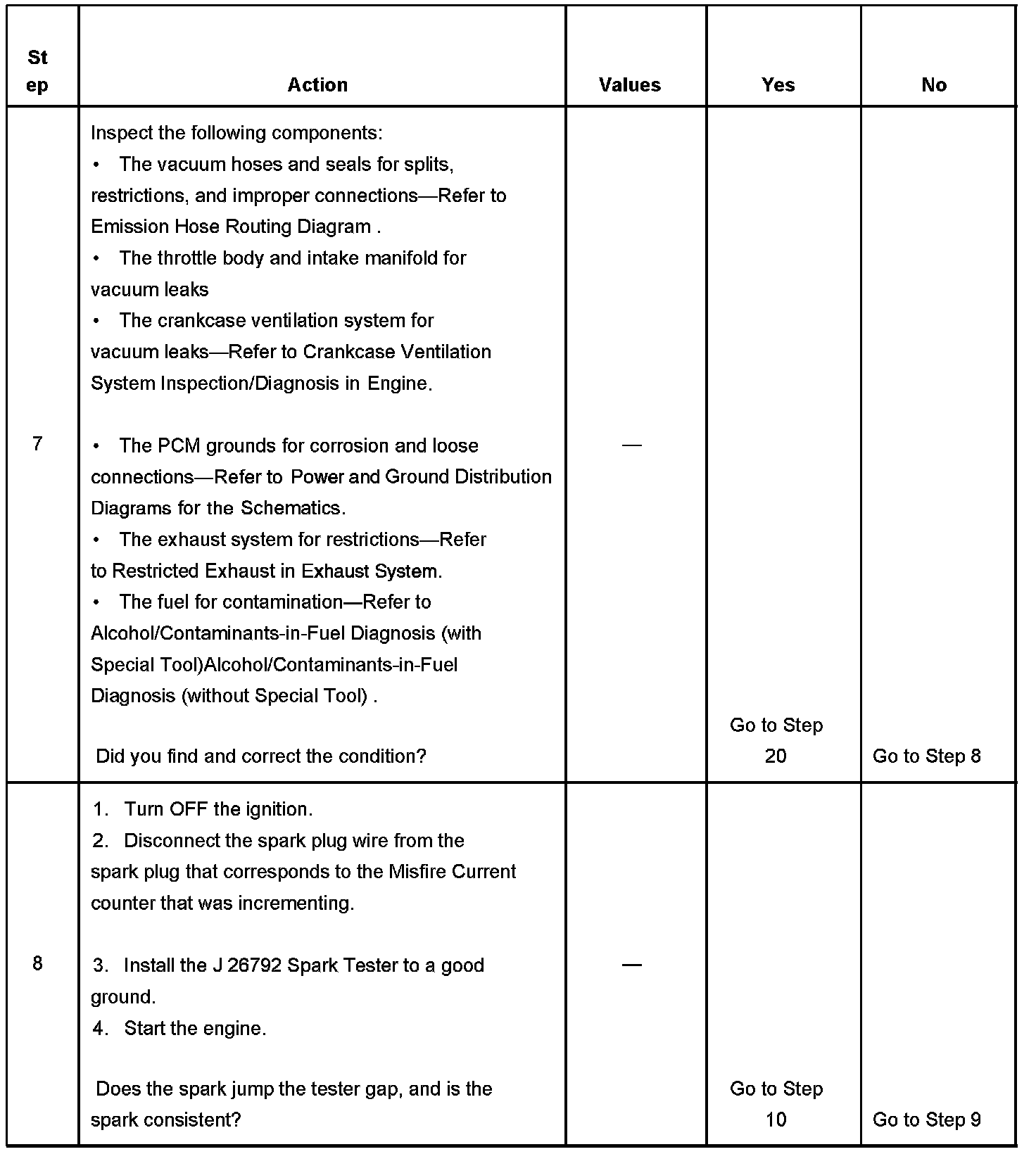 The number below refers to the step number on the diagnostic table.