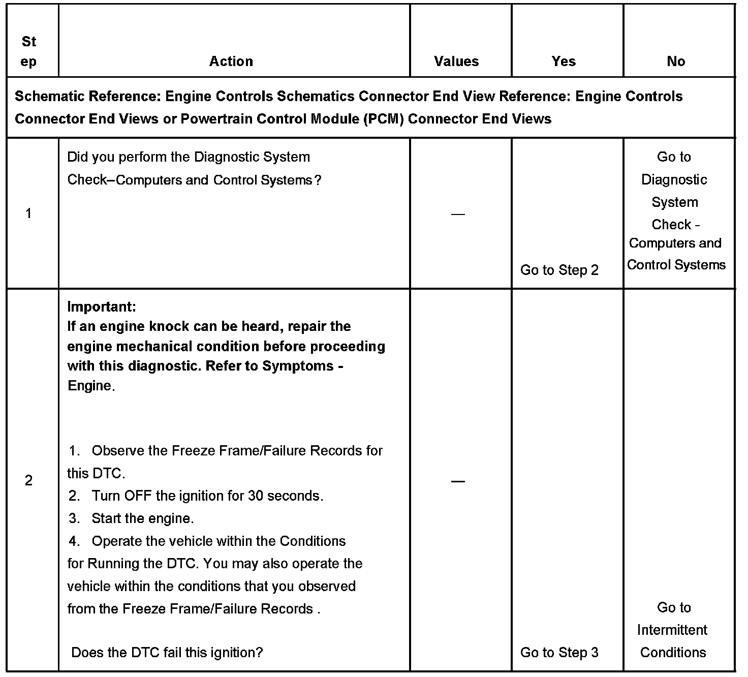 - If an intermittent is suspected, refer to Intermittent Conditions. Intermittent Conditions