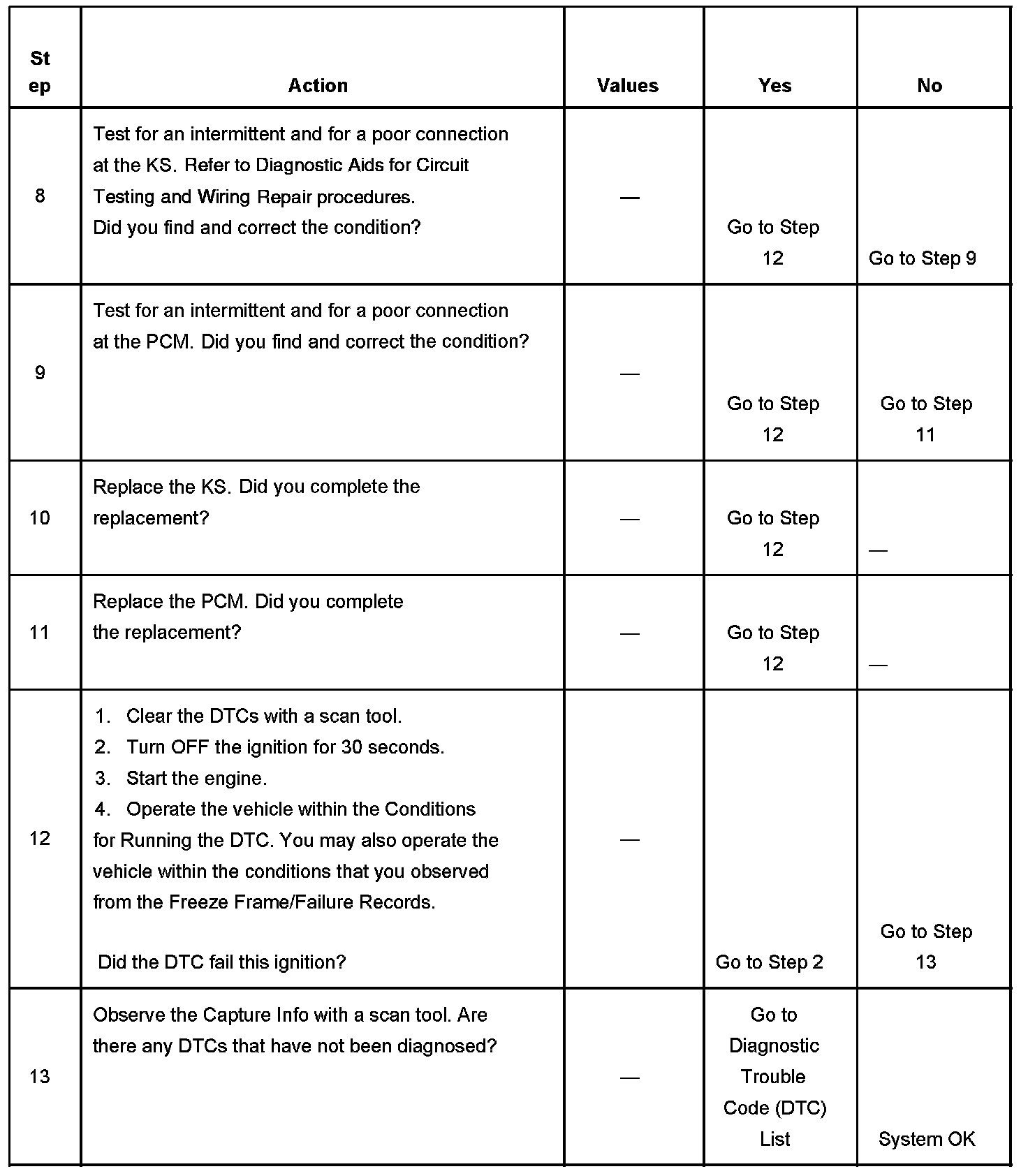 The number below refers to the step number on the diagnostic table.