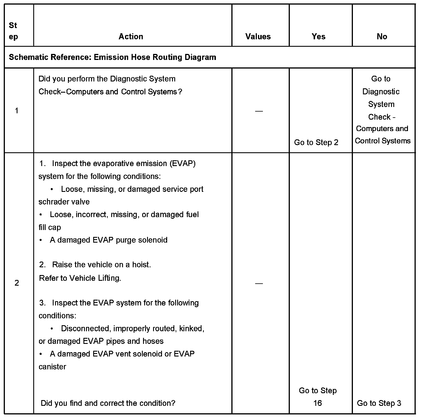 The numbers below refer to the step numbers on the diagnostic table.