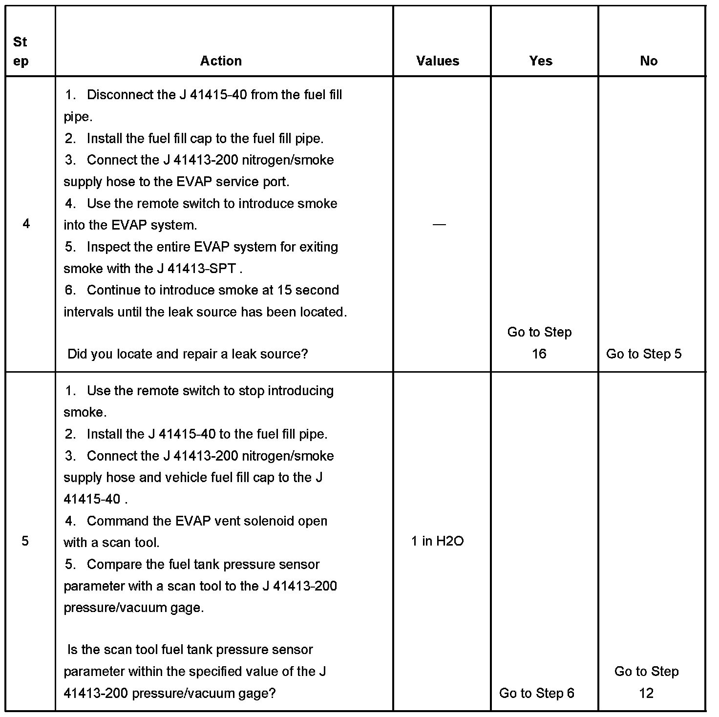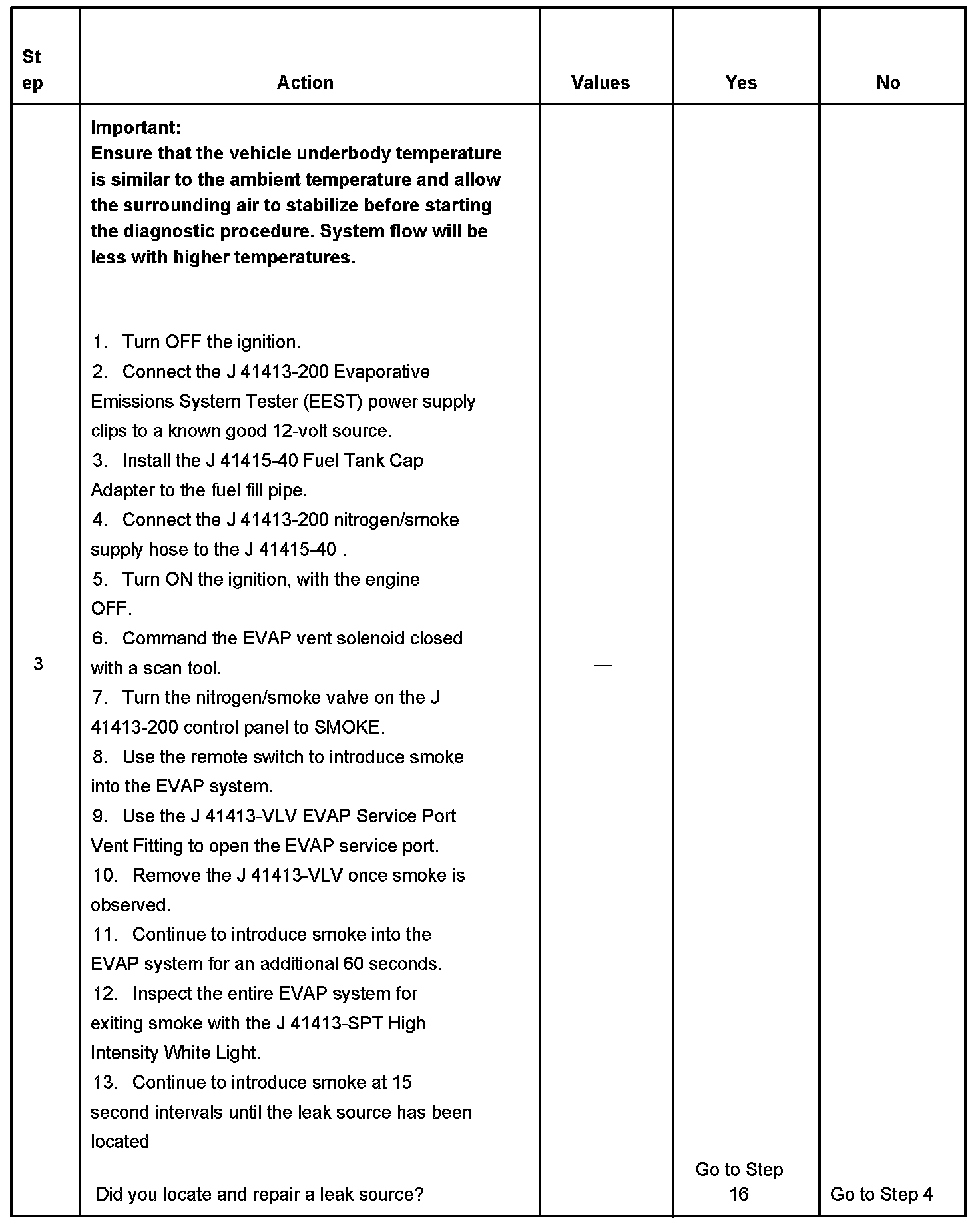 - To help locate intermittent leaks, use the J 41413-200 Evaporative Emissions System Tester (EEST) to introduce smoke into the EVAP system. Move all EVAP components while observing smoke with the J 41413-SPT High Intensity White Light. Introducing smoke in 15 second intervals will allow less pressure into the EVAP system. When the system is less pressurized, the smoke will sometimes escape in a more condensed manner.