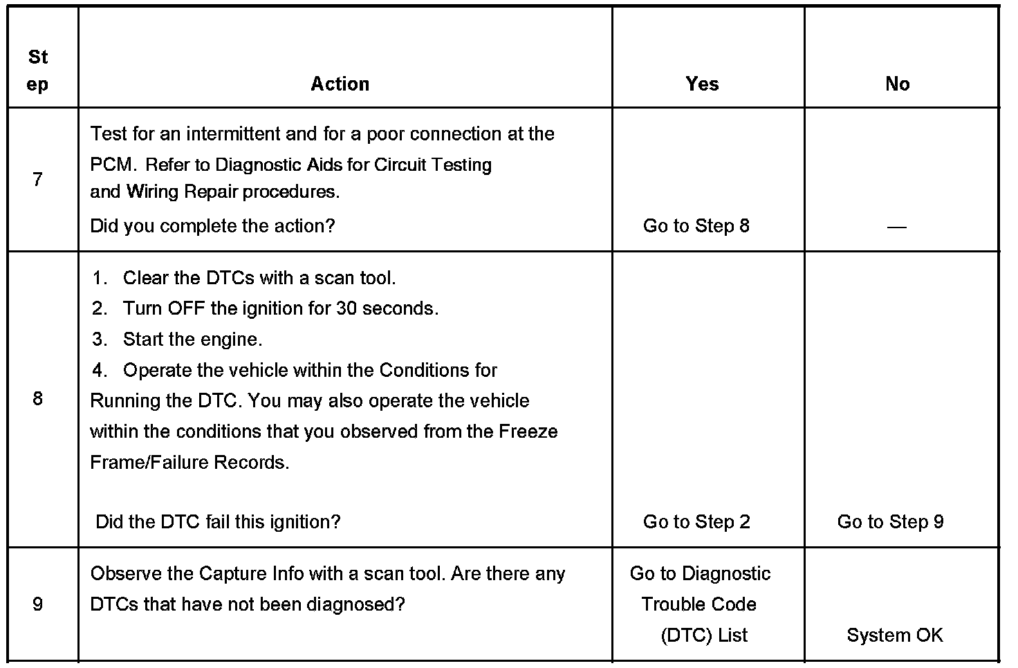 - A current DTC Last Test Failed clears when the diagnostic runs and passes.