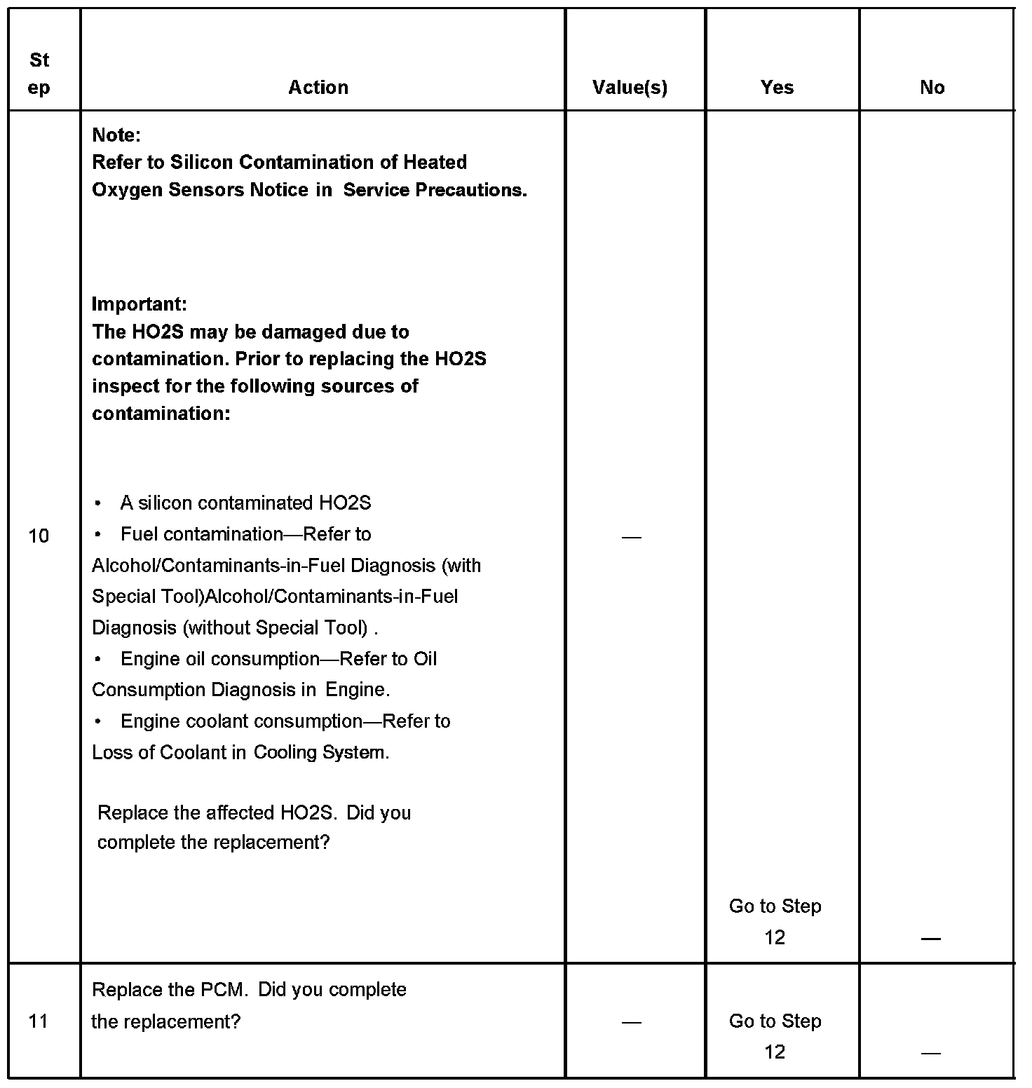 The number below refers to the step number on the diagnostic table.