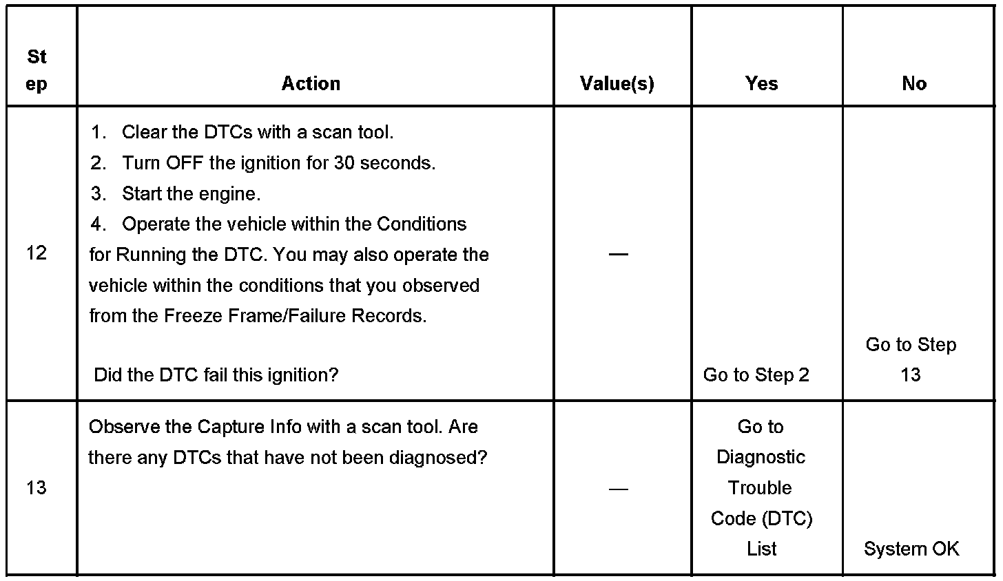 - A current DTC, Last Test Failed, clears when the diagnostic runs and passes.