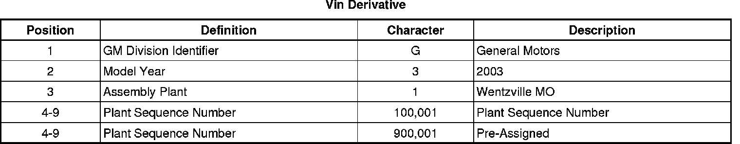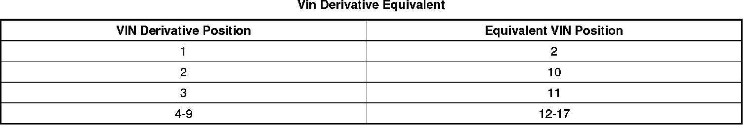 All engines and transmissions are stamped or laser etched with a partial Vehicle Identification Number (VIN), which was derived from the complete VIN. A VIN derivative contains the following nine positions: