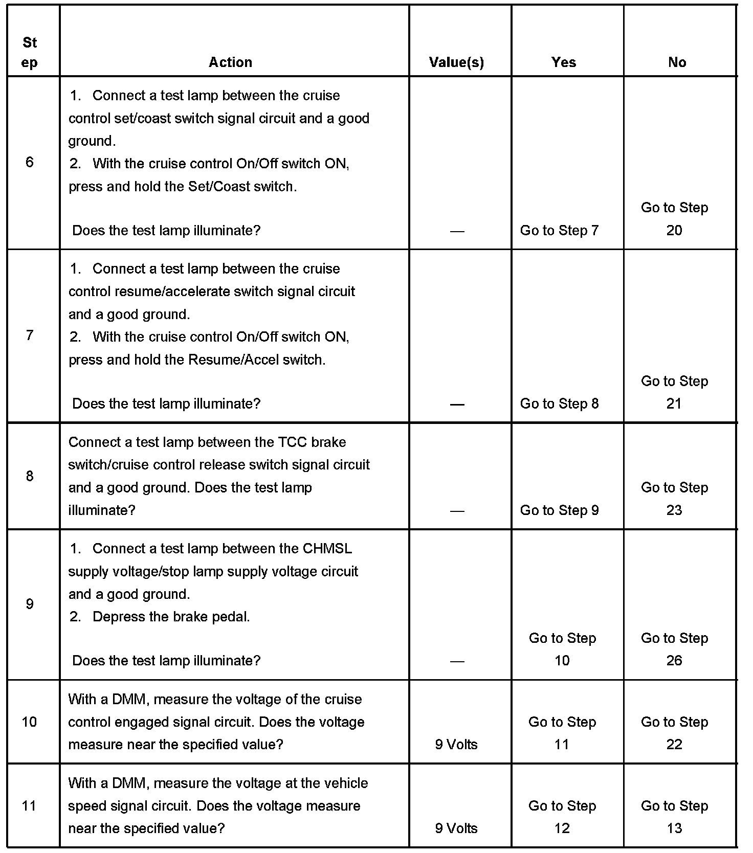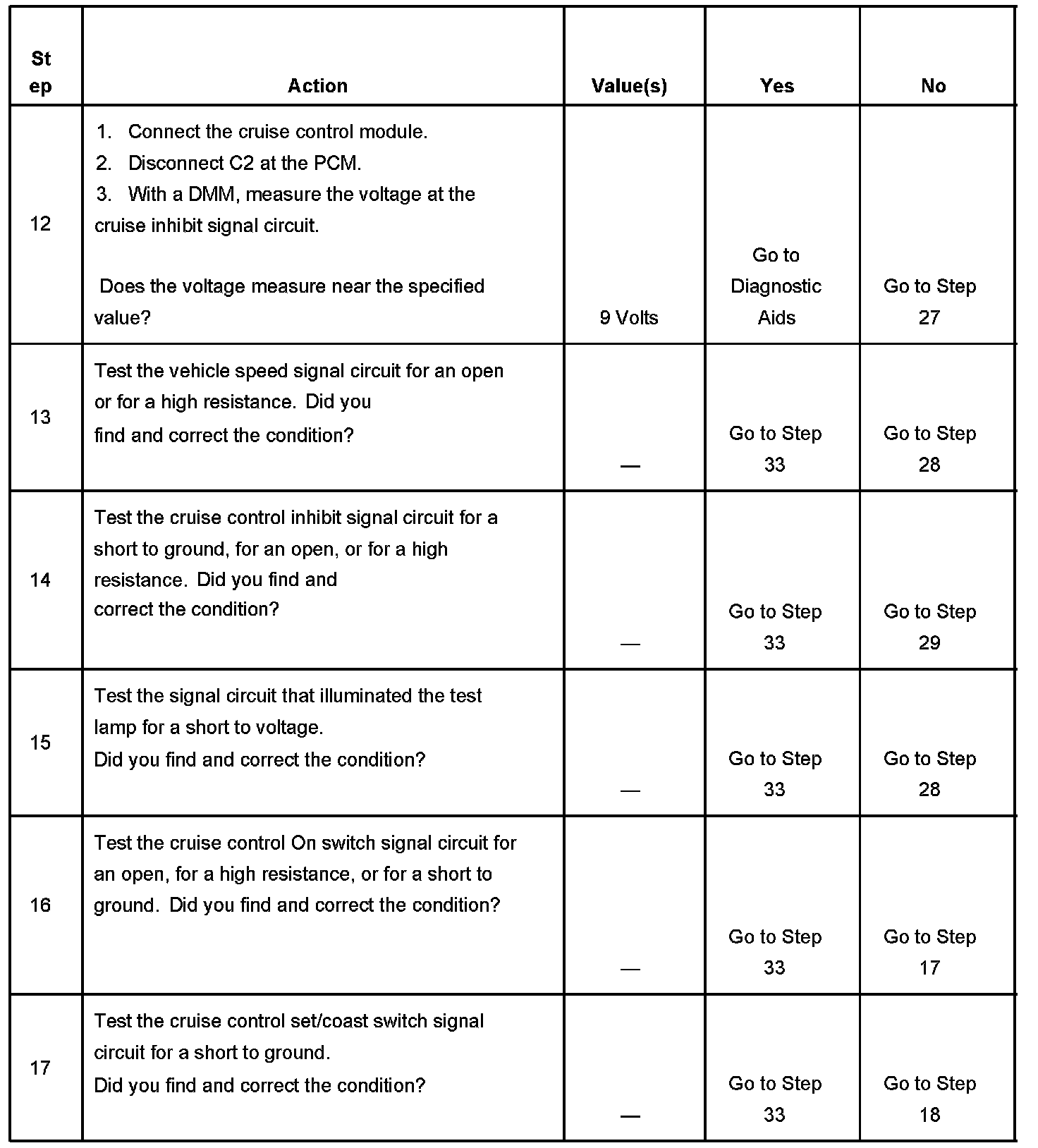 CRUISE CONTROL INOPERATIVE/MALFUNCTIONINGDIAGNOSTIC AIDS