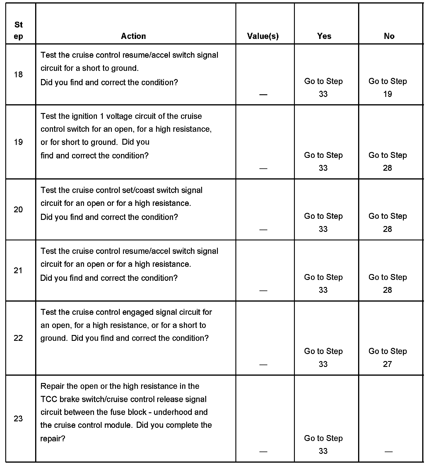 - Proper adjustment of the cruise control cable.