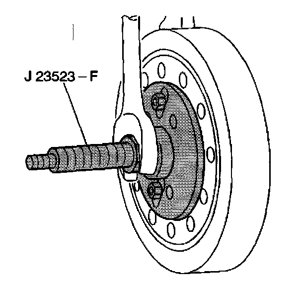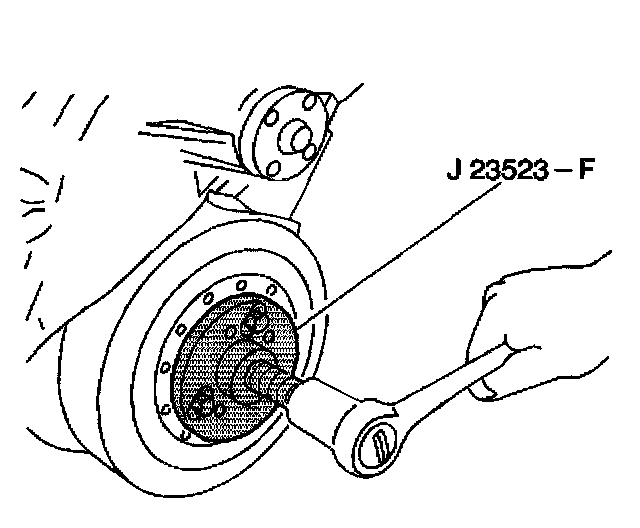 7. Remove the J 23523-F from the crankshaft balancer.