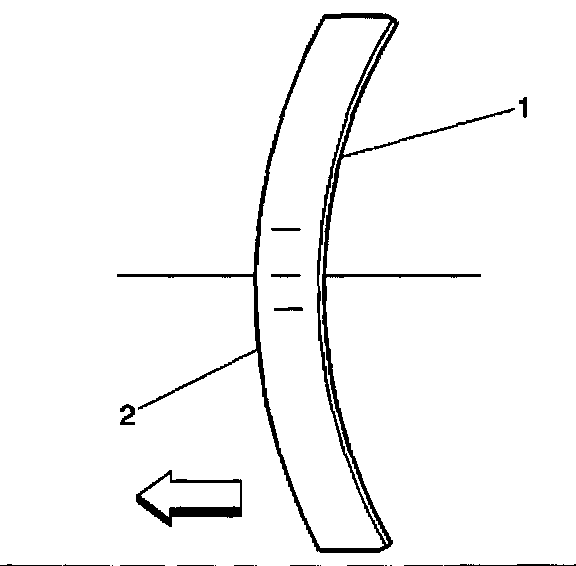 9. Ensure that the crown of the crankshaft balancer washer (2) is faced away from the engine.