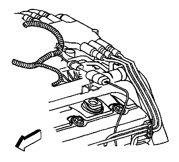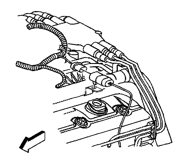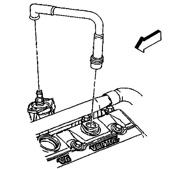 3. Remove the positive crankcase ventilation (PCV) valve and hose assembly from the valve rocker arm cover and the intake manifold.