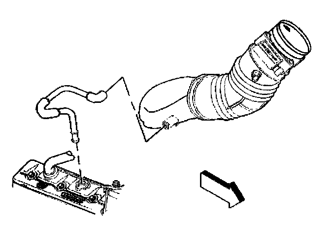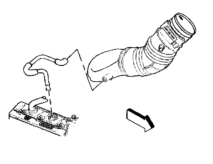 7. Install the PCV hose in the valve rocker arm cover and to the air inlet duct.