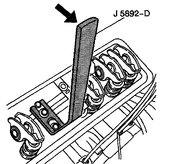 9.1. Hook the slotted end of J 5892-D under the washer on the valve rocker arm bolt.