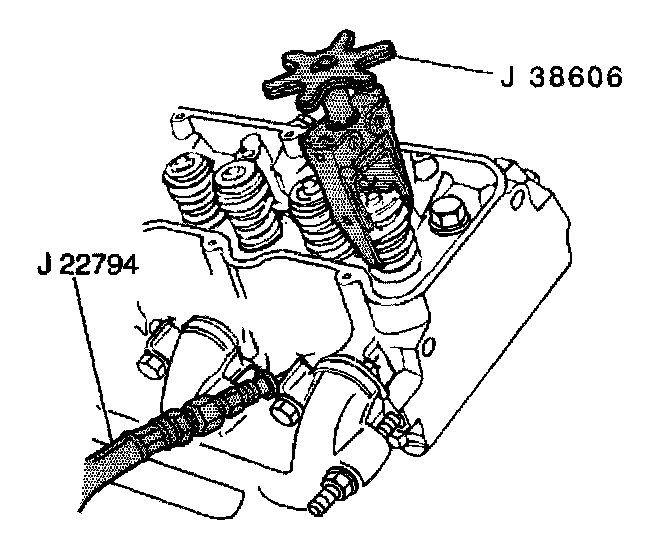 Notice: Completely engage the J 38606 jaws on the valve spring. The J 38606 may slip off and scratch the valve spring. Replace the valve spring if the valve spring becomes scratch.