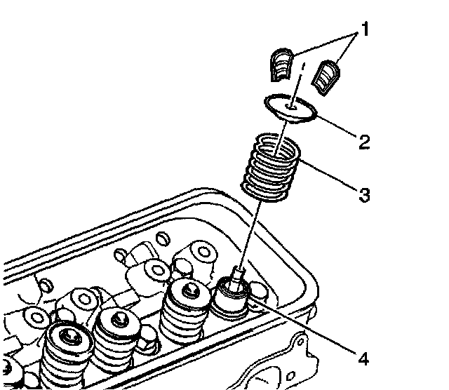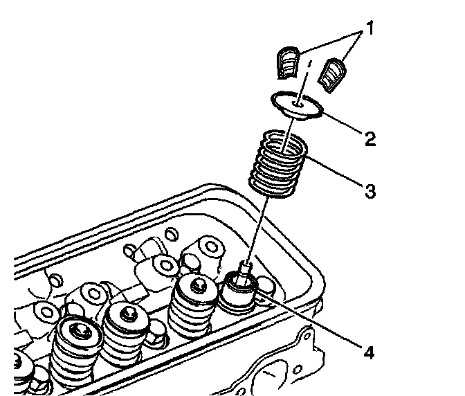 Notice: The valve stem keys must correctly seat in the valve spring cap. Engine damage may occur by not installing properly.