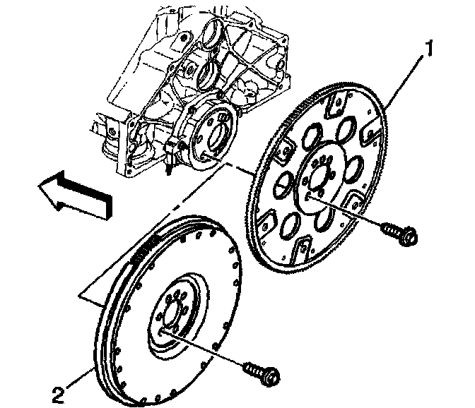 1. Clean the engine flywheel (1 or 2) in cleaning solvent.