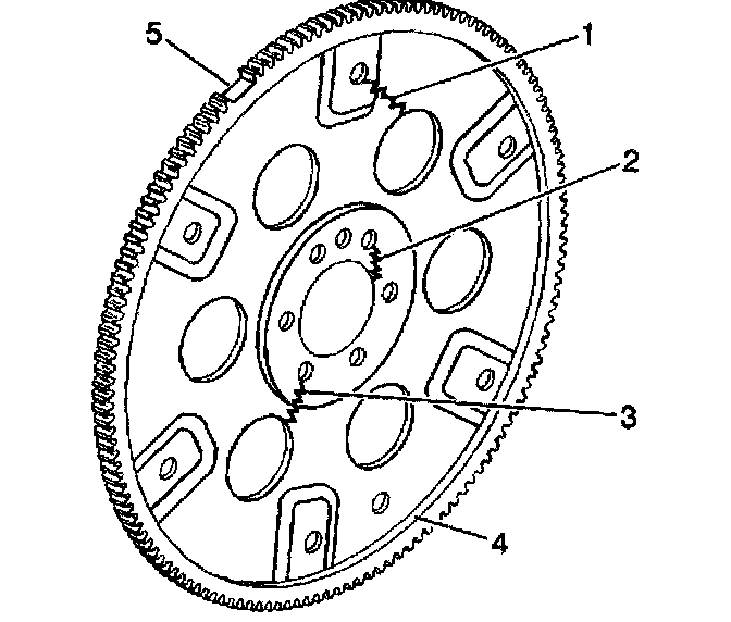 ^ Welded areas that retain the ring gear onto the engine flywheel for cracking (4), if present
