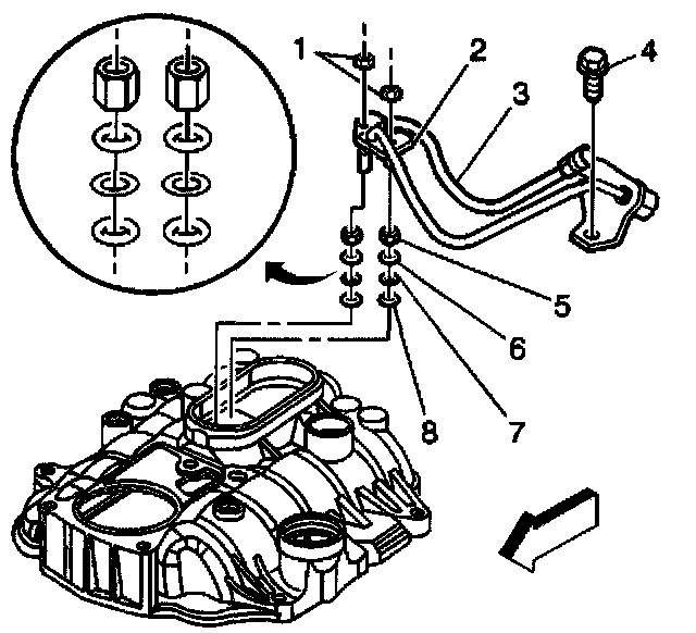 21. If reusing the fastener, apply threadlock GM P/N 12345382 (Canadian P/N 10953489) or equivalent, to the threads of the fuel pipe bolt.