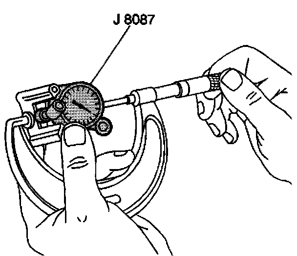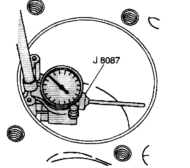 1. Use the J 8087 in order to measure the cylinder bore diameter. Measure at a point 64 mm (2.5 inch) from the top of the cylinder bore and 90 degrees to the crankshaft centerline
