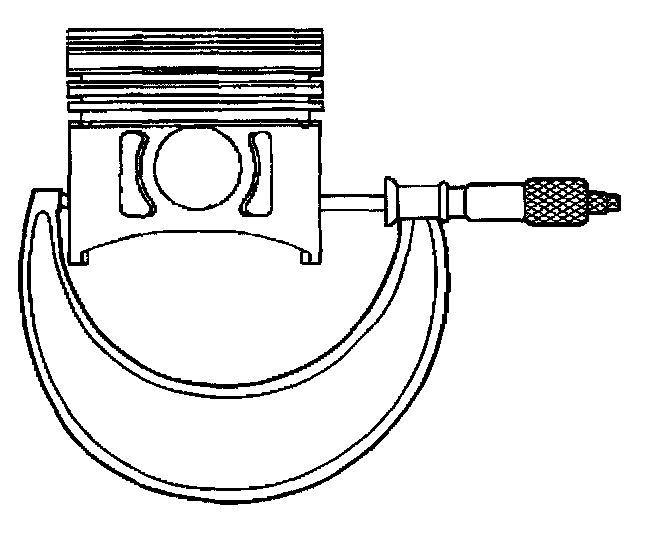 3. With a micrometer or caliper at a right angle to the piston pin bore, measure the piston 11 mm (0.433 inch) from the bottom of the skirt.