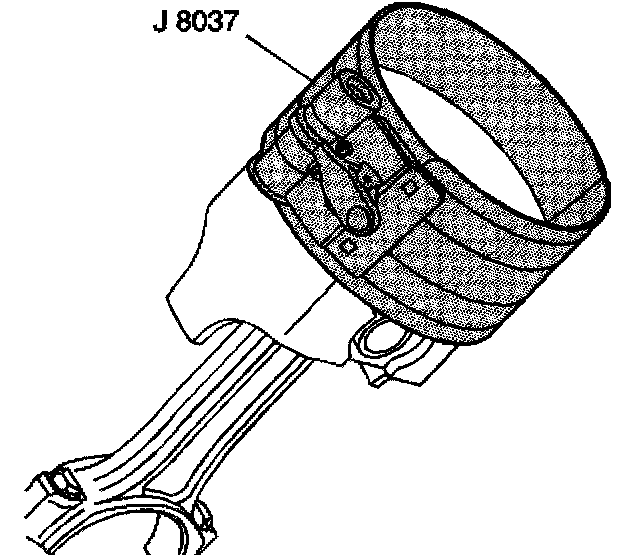 3. Install the J 8037 onto the piston and compress the piston rings.