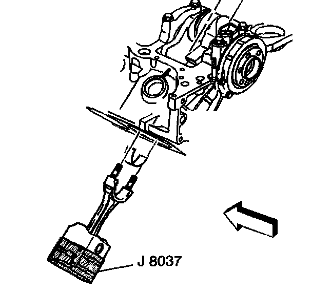 4. Install the piston and connecting rod assembly, and the J 8037 into the proper cylinder bore.