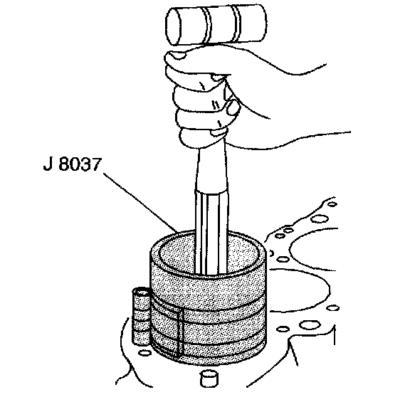 5. Use the J 8037 and the J 5239 and lightly tap the top of the piston with a wooden hammer handle.