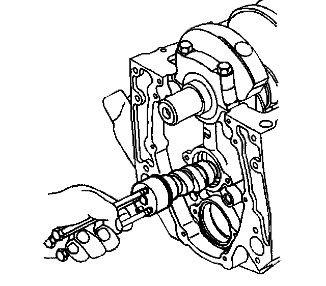 4. Remove the 3 bolts from the front of the engine camshaft.