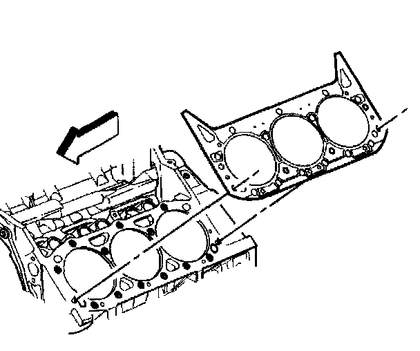 4. Install the NEW cylinder head gasket in position over the cylinder head locator dowel pins.