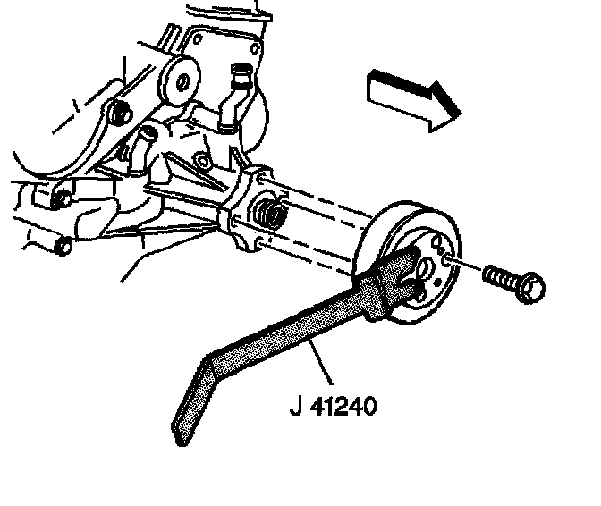 5. Install the fan and water pump pulley and bolts using the J 41240.