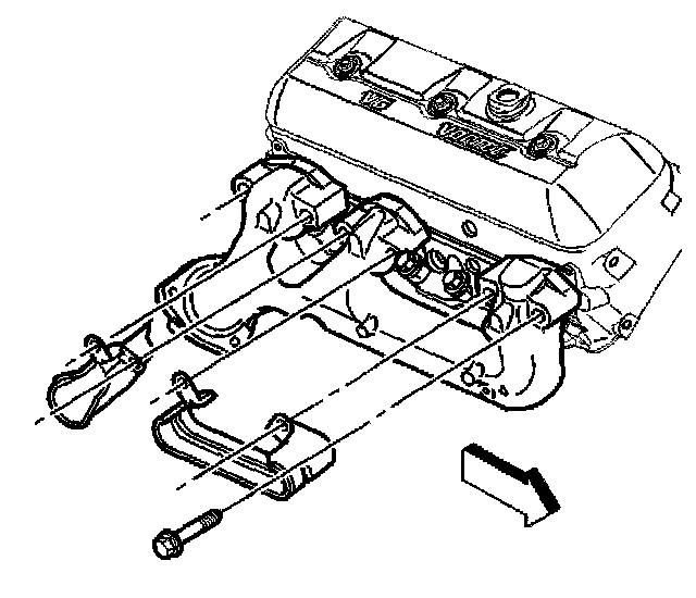 4. If reusing the fasteners, apply threadlock GM P/N 12345493 (Canadian P/N 10953488) or equivalent, to the threads of the exhaust manifold bolts.