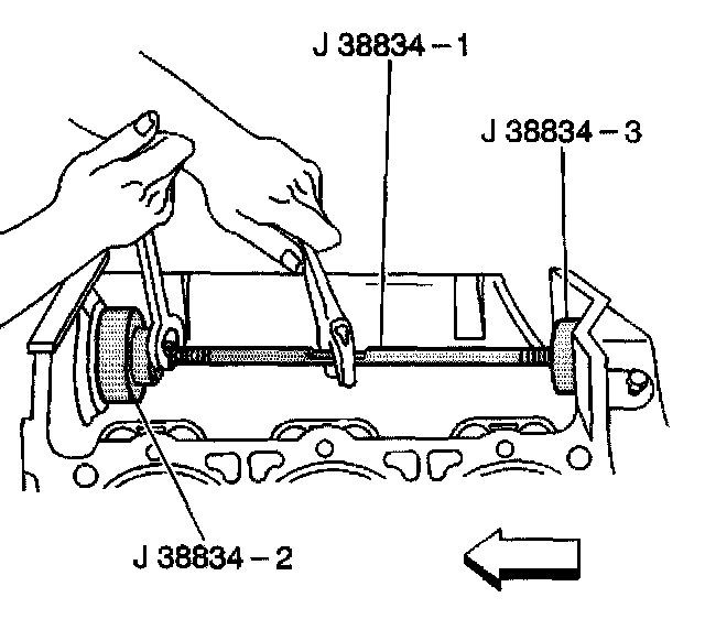 1. Use the J 38834 in order to install the balance shaft rear bearing.